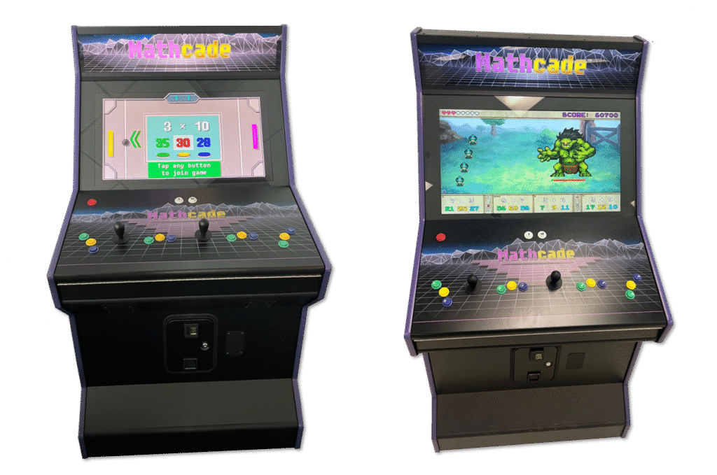 Modern arcade cabinet with a retro feel. Built in monitor. Includes games: Math Pong, Sliders, Space Bubbles and Math Wizard TD. Customize your own color t-molding. Contact for a quote.