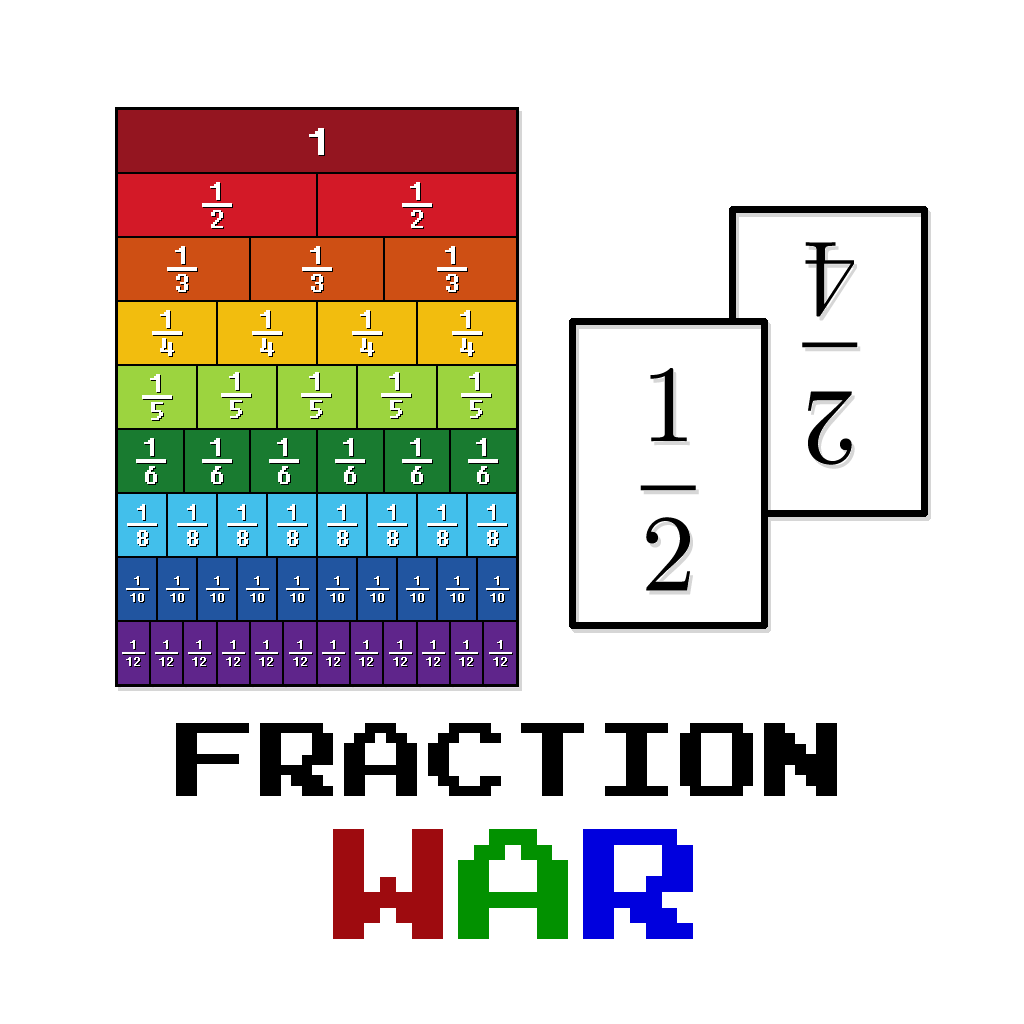 Play the traditional “War” card game with custom fraction cards.